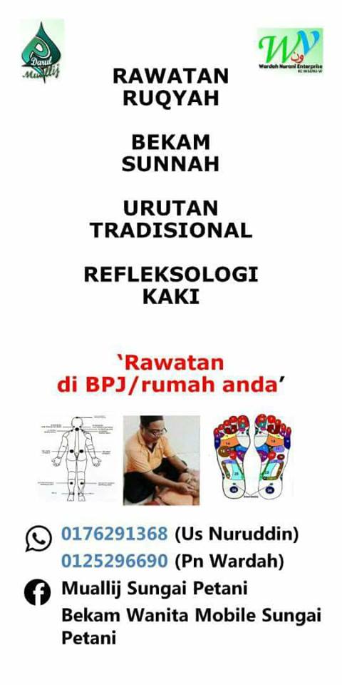 Bagi sesiapa yang ingin ikhtiar kes medikal, boleh diusaha cara berdepan atau jika sukar saya buat cara jarak jauh (bacaan yasin, selawat dan hizib-hizib selama 30 hari)